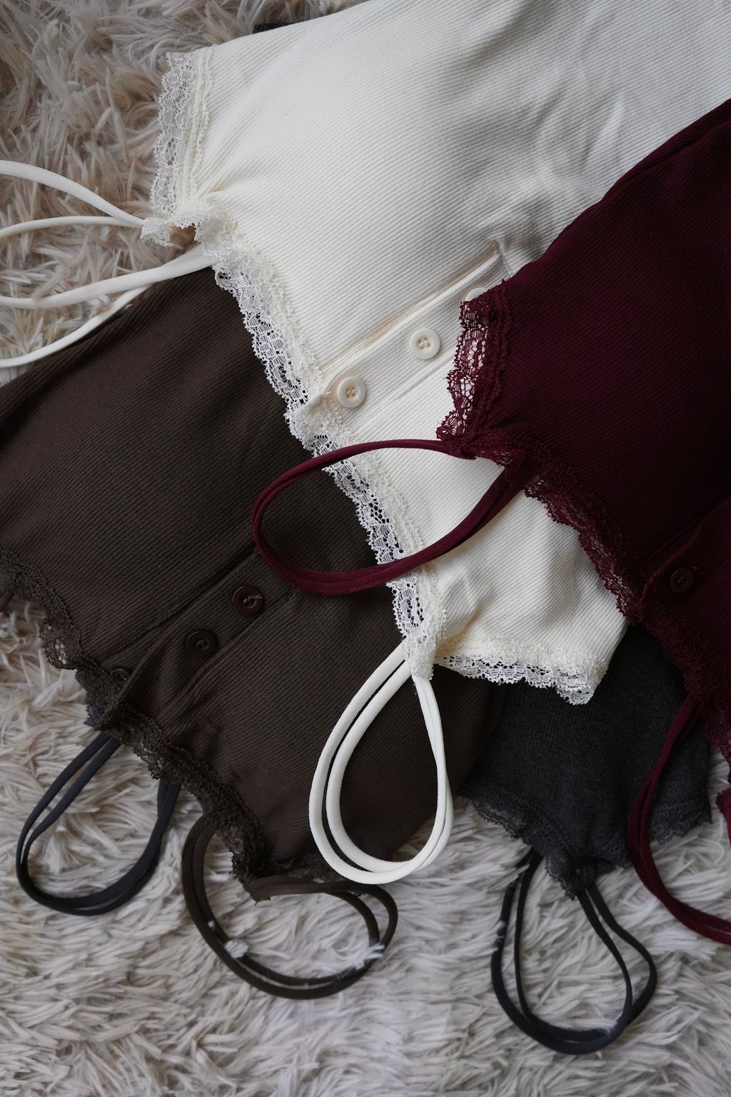 [C] 保暖刷絨低調平口棉蕾絲雙肩帶裝飾扣BraTop|5色