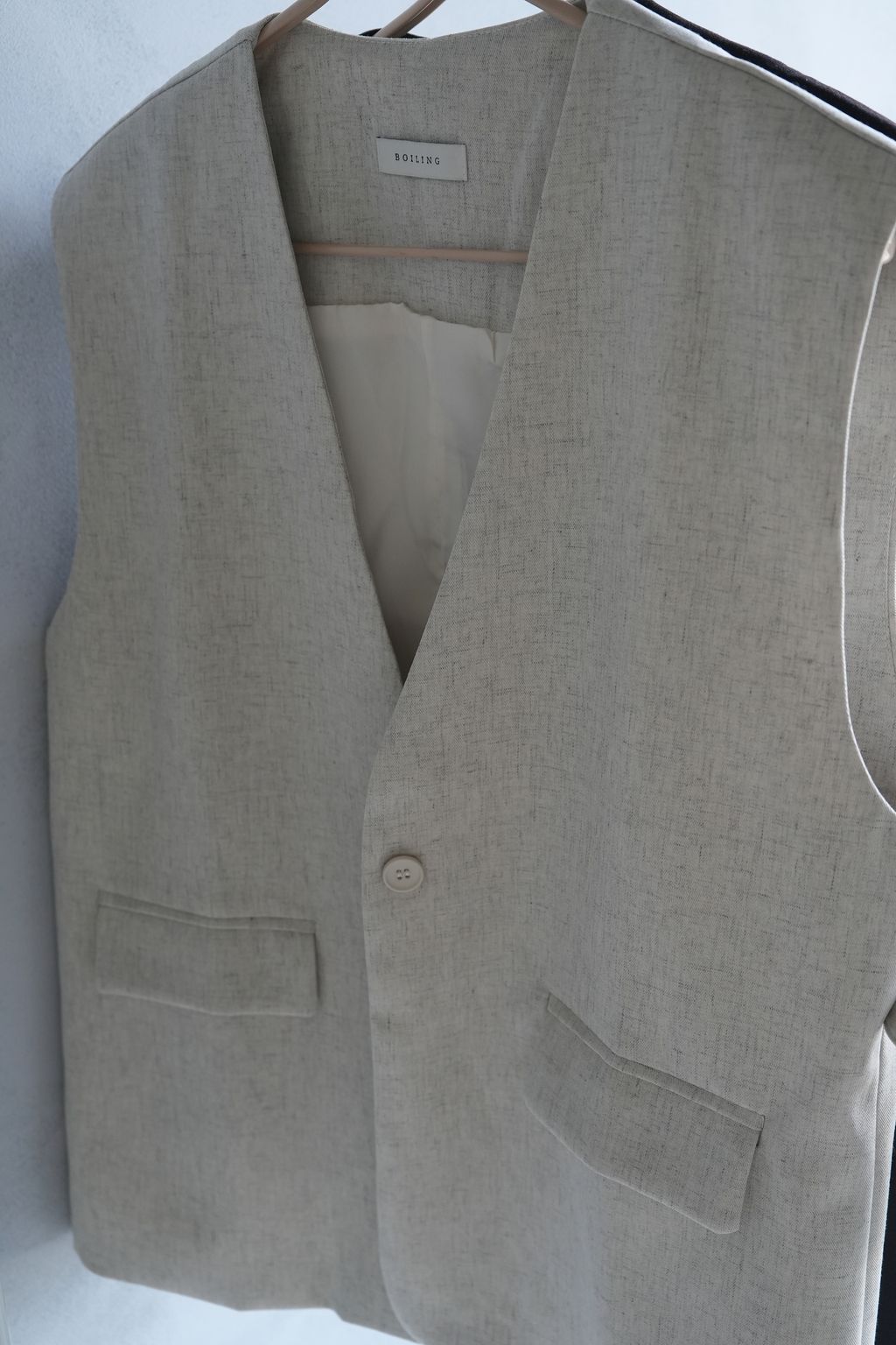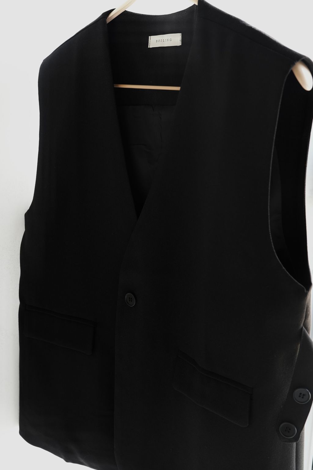 [C] 質感混色織料單扣弧領西裝背心|黑杏*oversize寬版