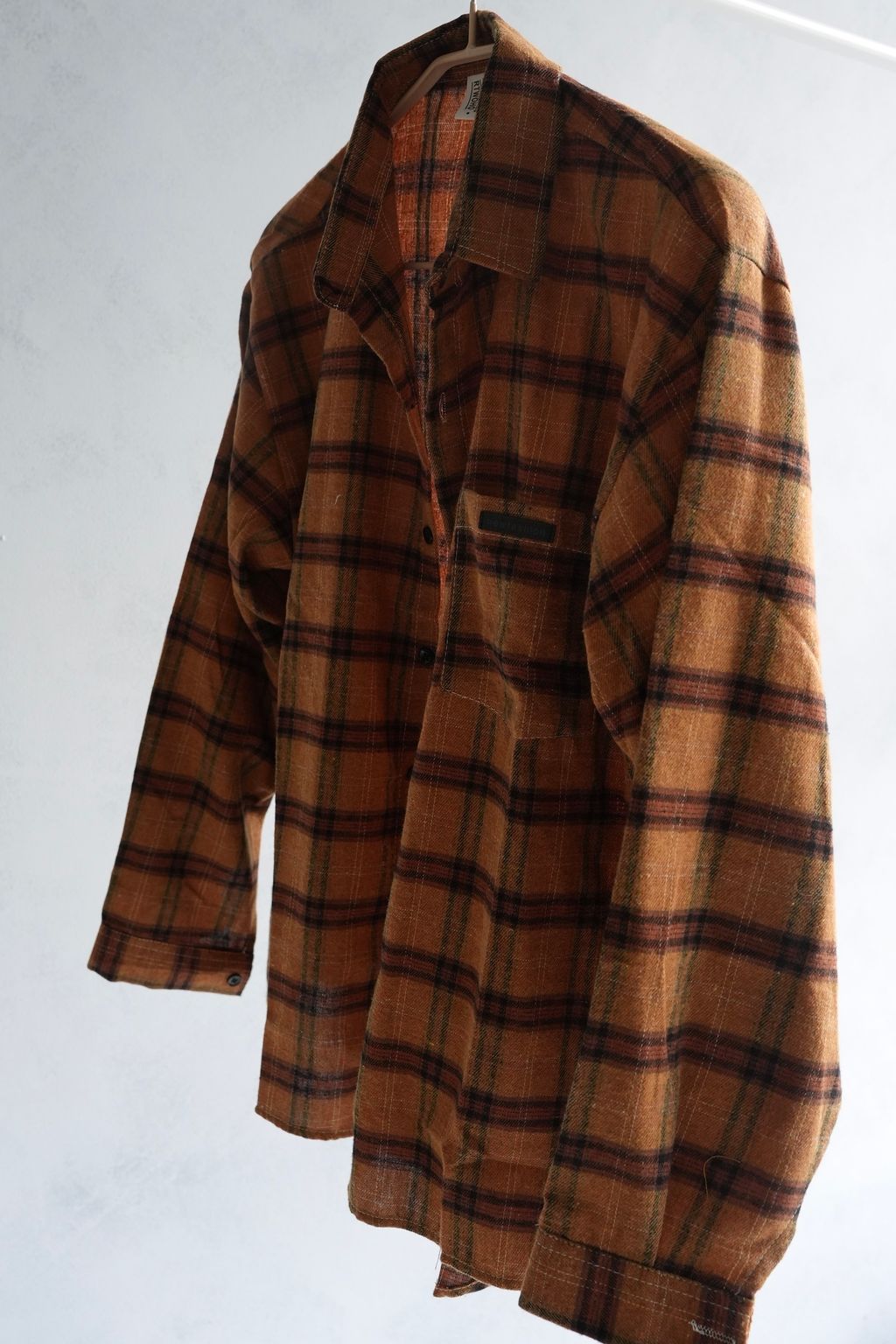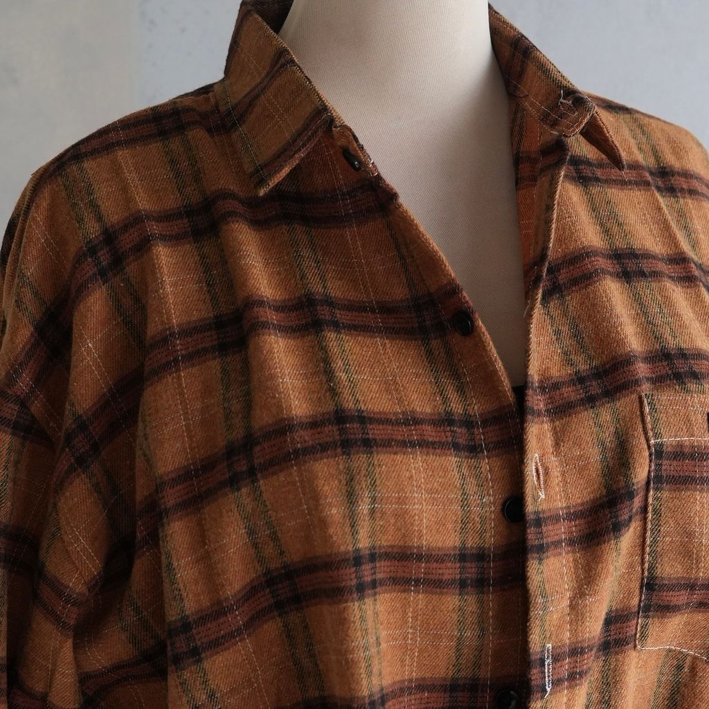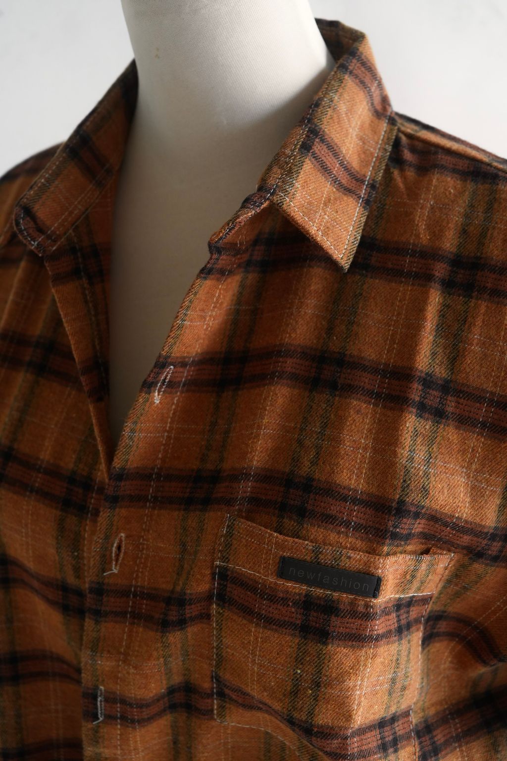 [C] 中性版復古暖陽格毛呢感薄棉襯衫|寬鬆4尺寸