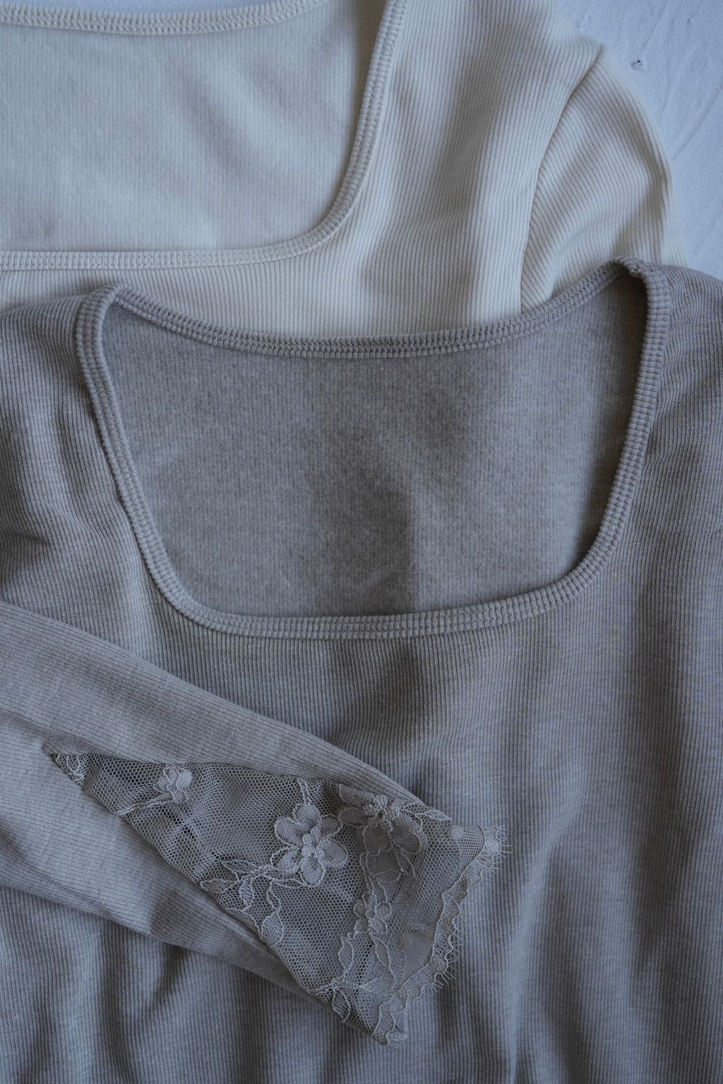 [C] 小方領蕾絲袖保暖刷絨內搭長袖上衣|5色