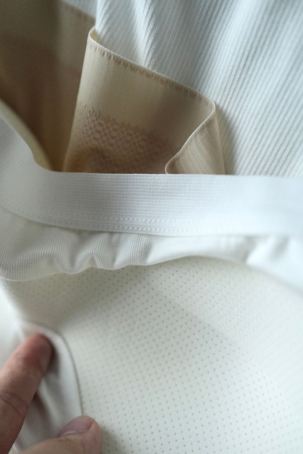- 洗滌須深淺色分開,以冷水於重點部位(衣領袖口腋下後背等)輕柔手洗,勿整體大力搓揉,可1-2件放小型洗衣袋/內衣袋再做3分鐘內短暫脫水,不可大力擰轉、不可烘乾,並且絕對避免使用溫水/熱水洗滌!萬萬不可!易造成縮水或褪染色現象,洗衣機放置在戶外或陽光可照射位置皆有升溫風險須注意!