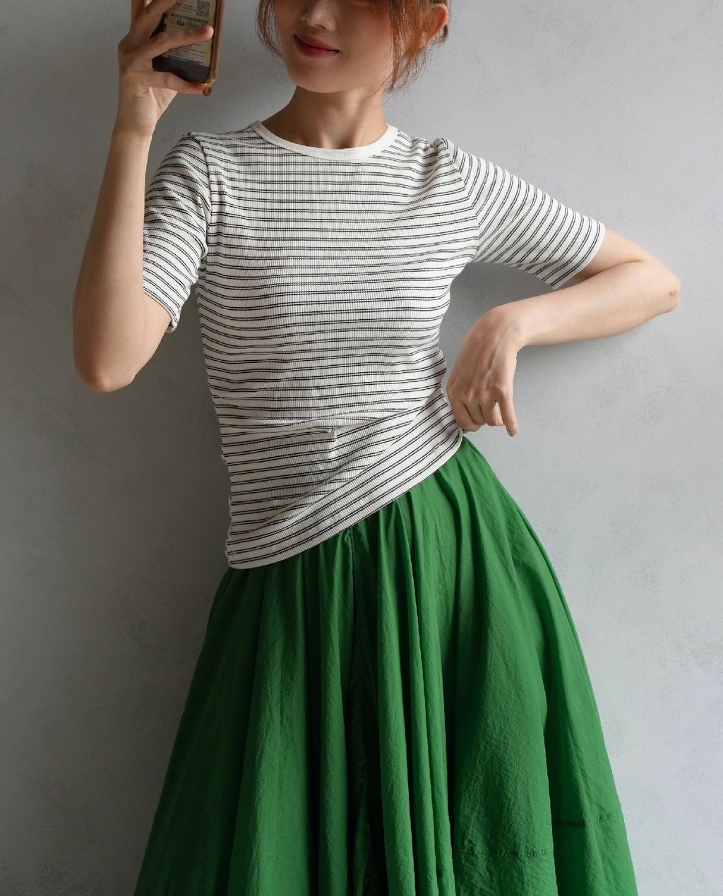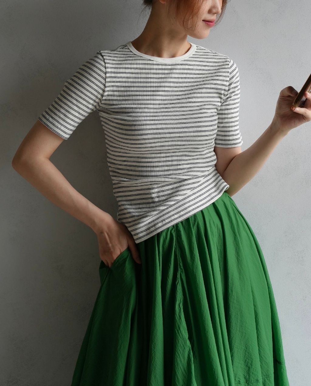 [C] 五分中袖顯白撞色彈力條紋上衣|2色*4尺寸