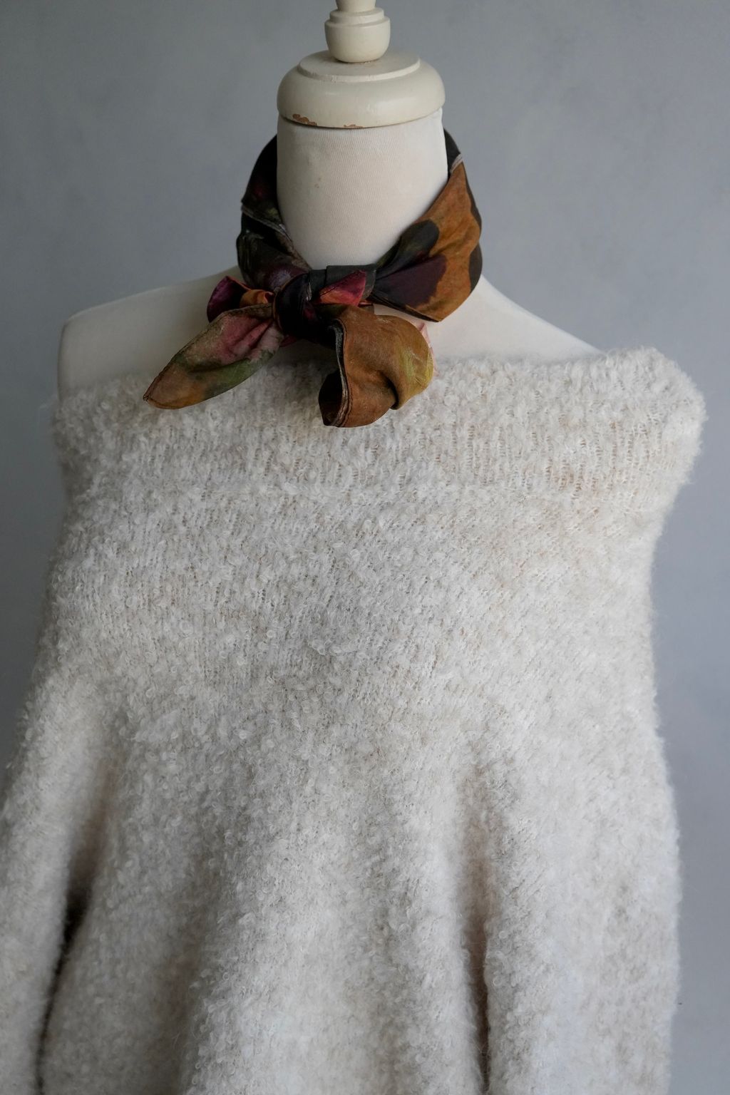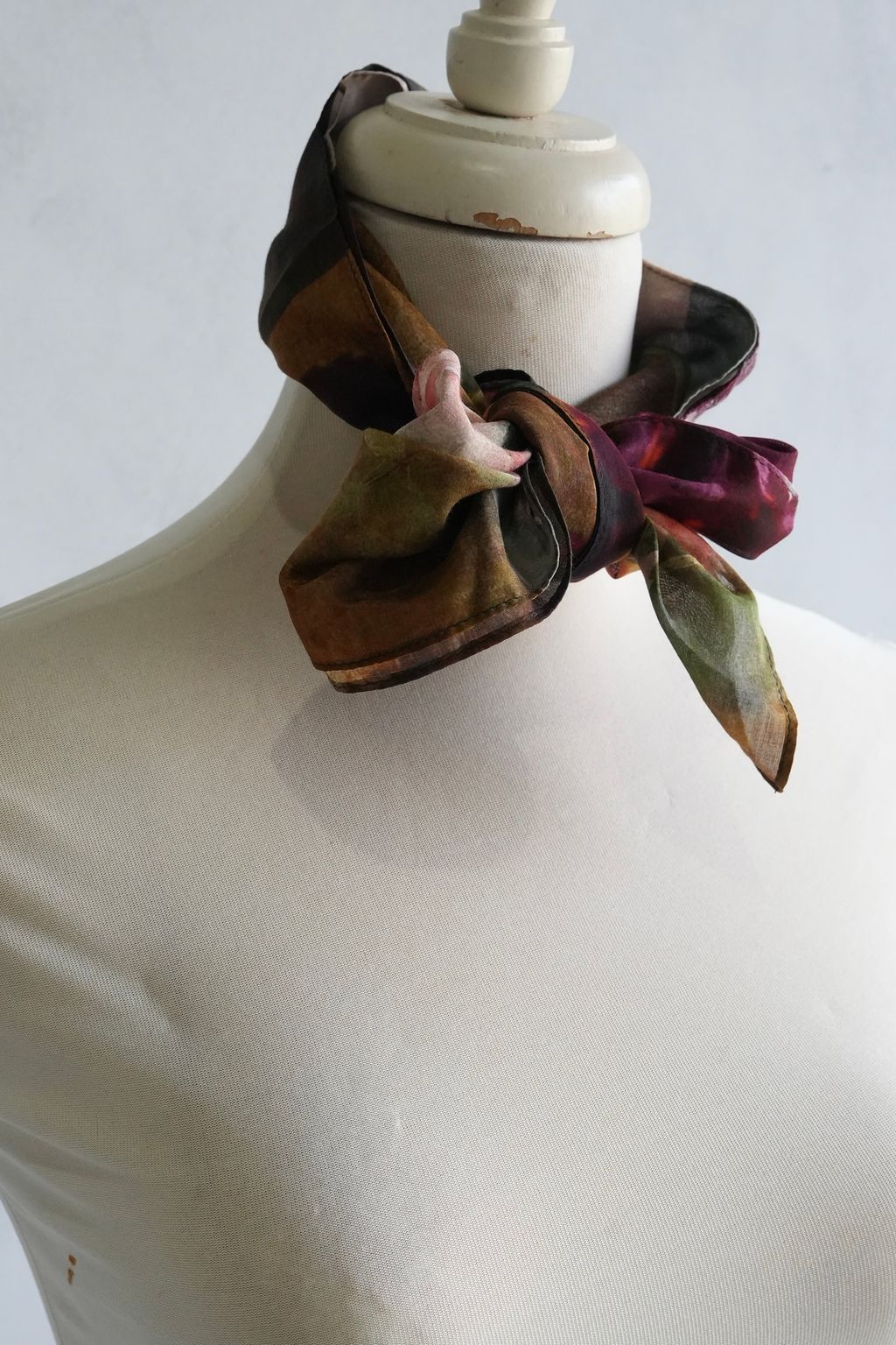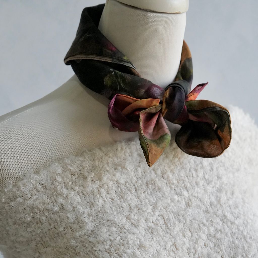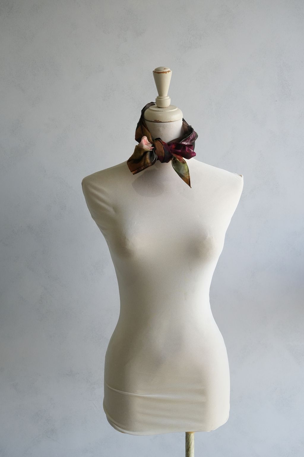 [C] 優雅古典油畫色調真絲棉質小方巾領巾