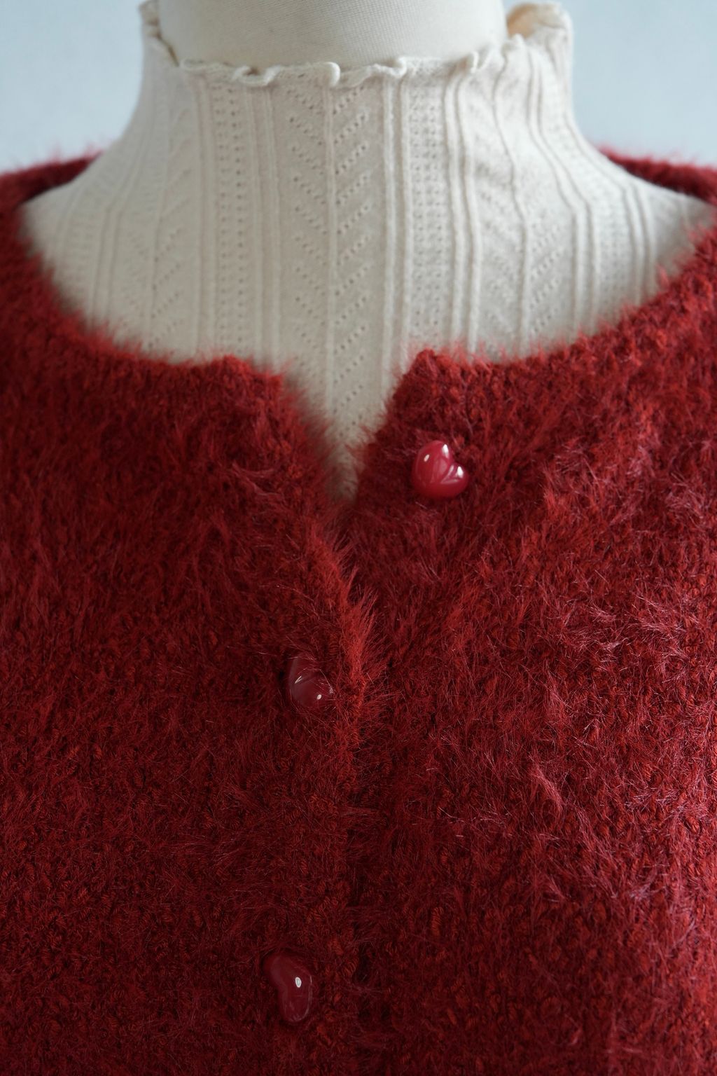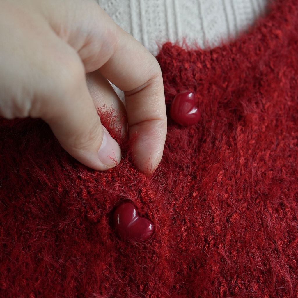 [C] 立體飽滿小愛心扣舒適好好摸垂墜水貂絨針織罩衫|2色