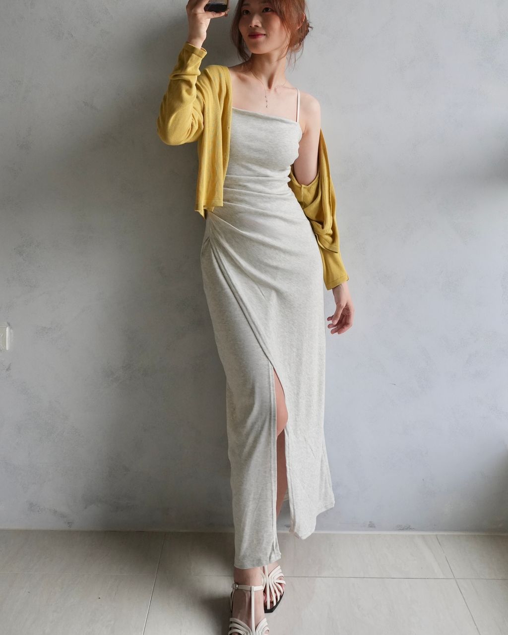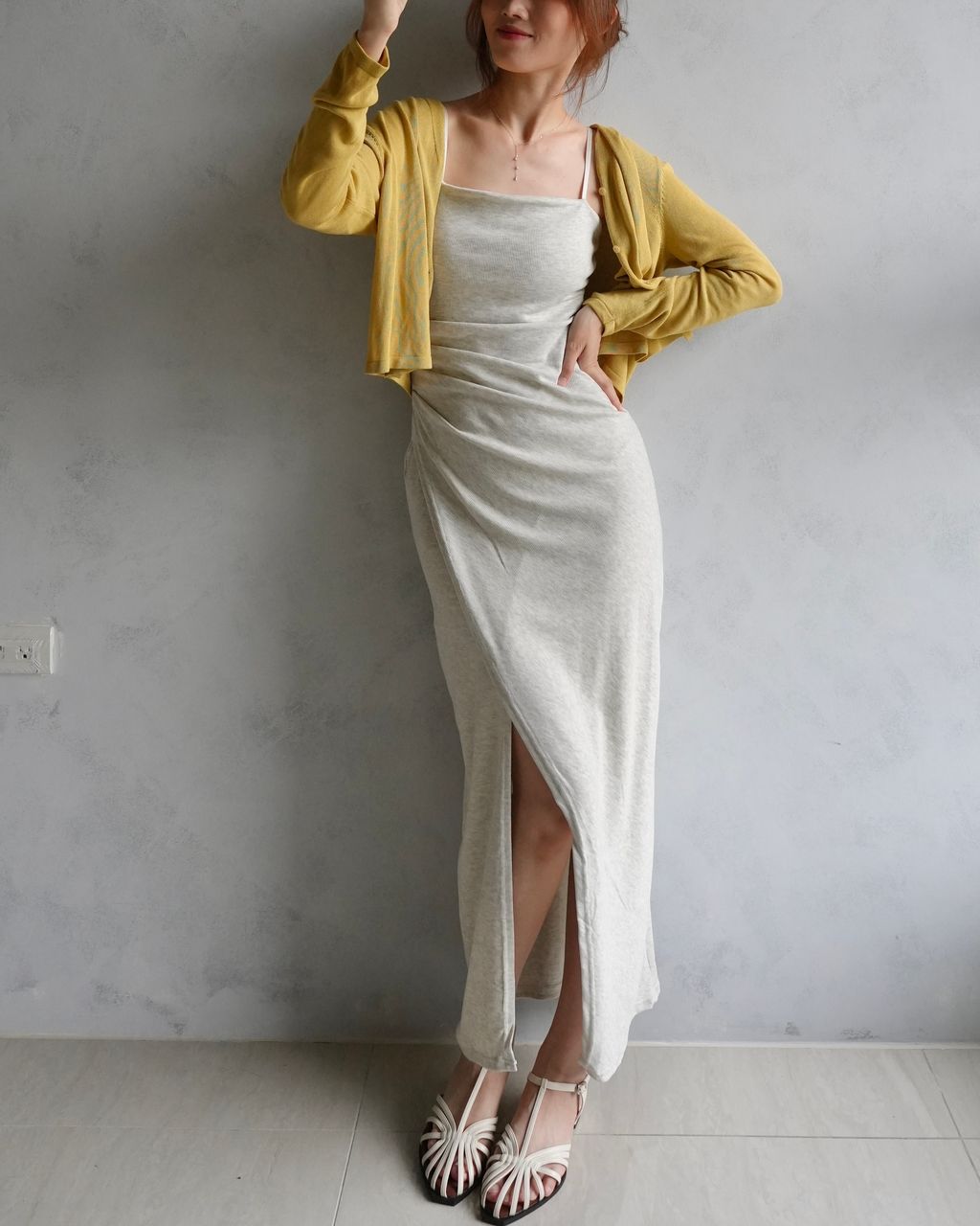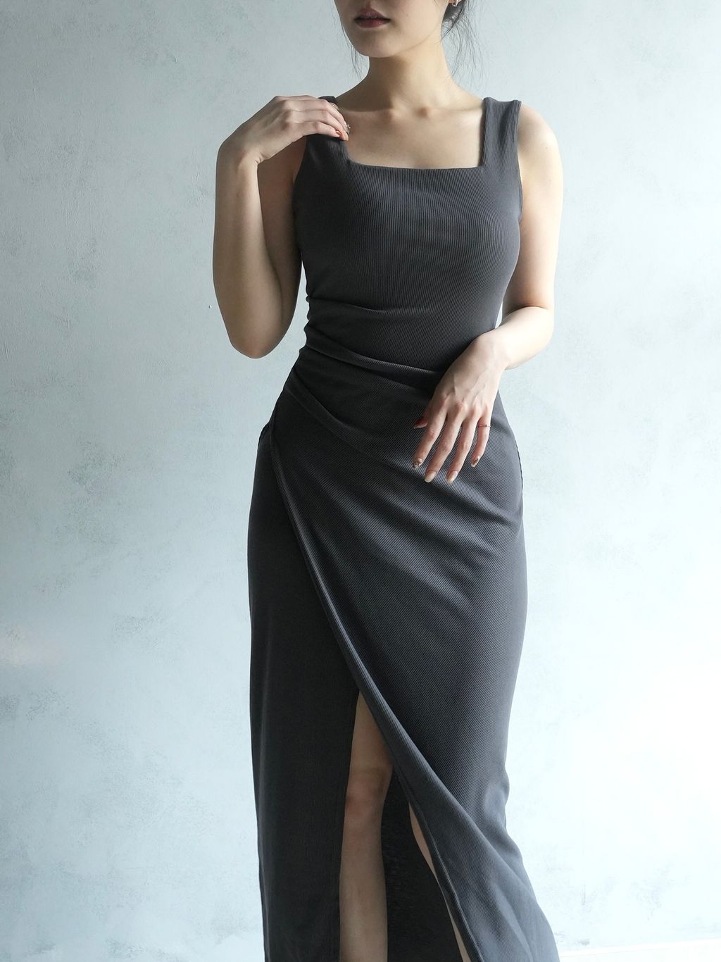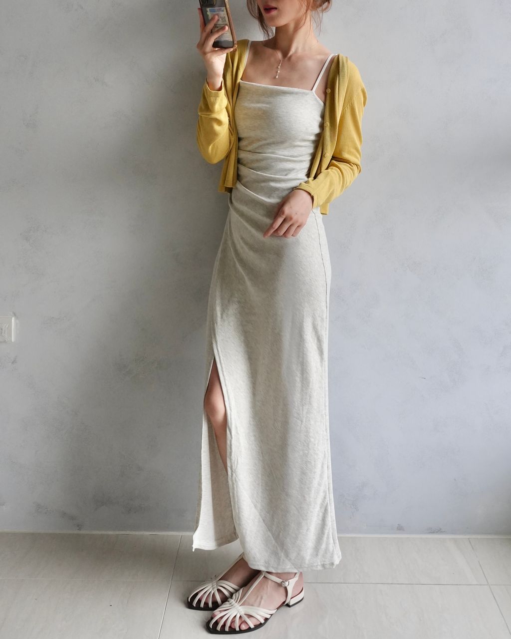 美中不足弱勢|螺紋棉正常版胸口上方的微弧度、若較瘦的朋朋穿起來側面會有點澎澎的;裙身開衩設計沒有做口袋
