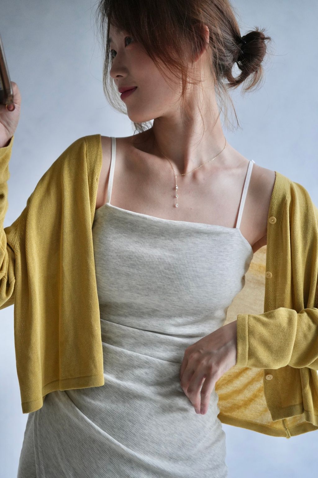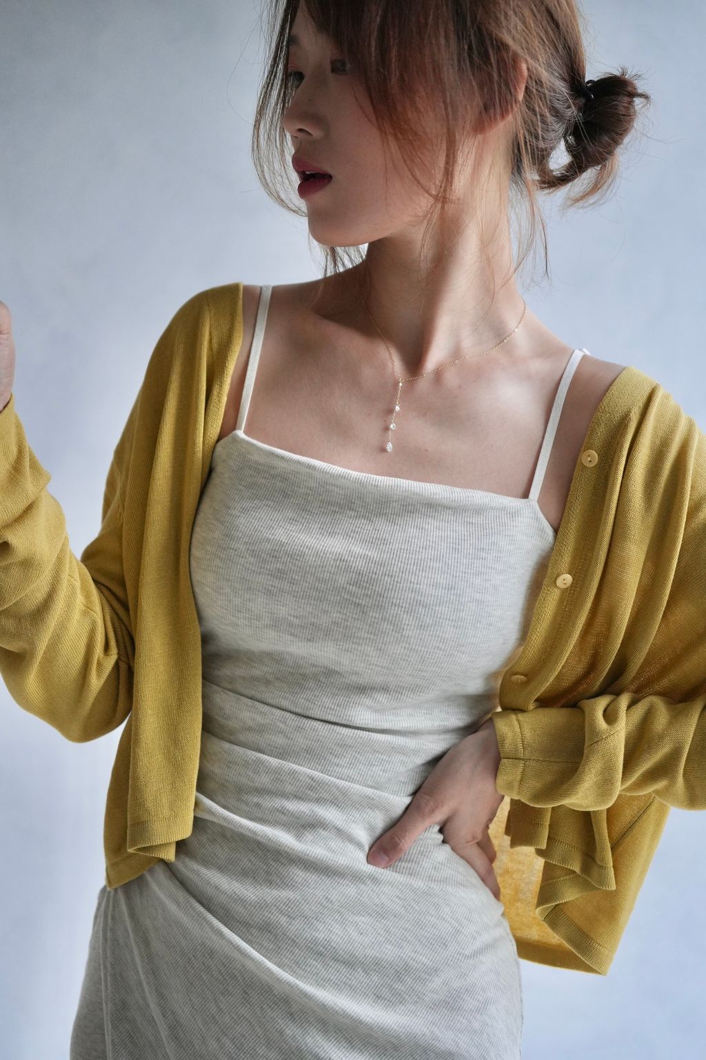 9.垂墜感手感極好的顯白薑黃色滑順針織衫: