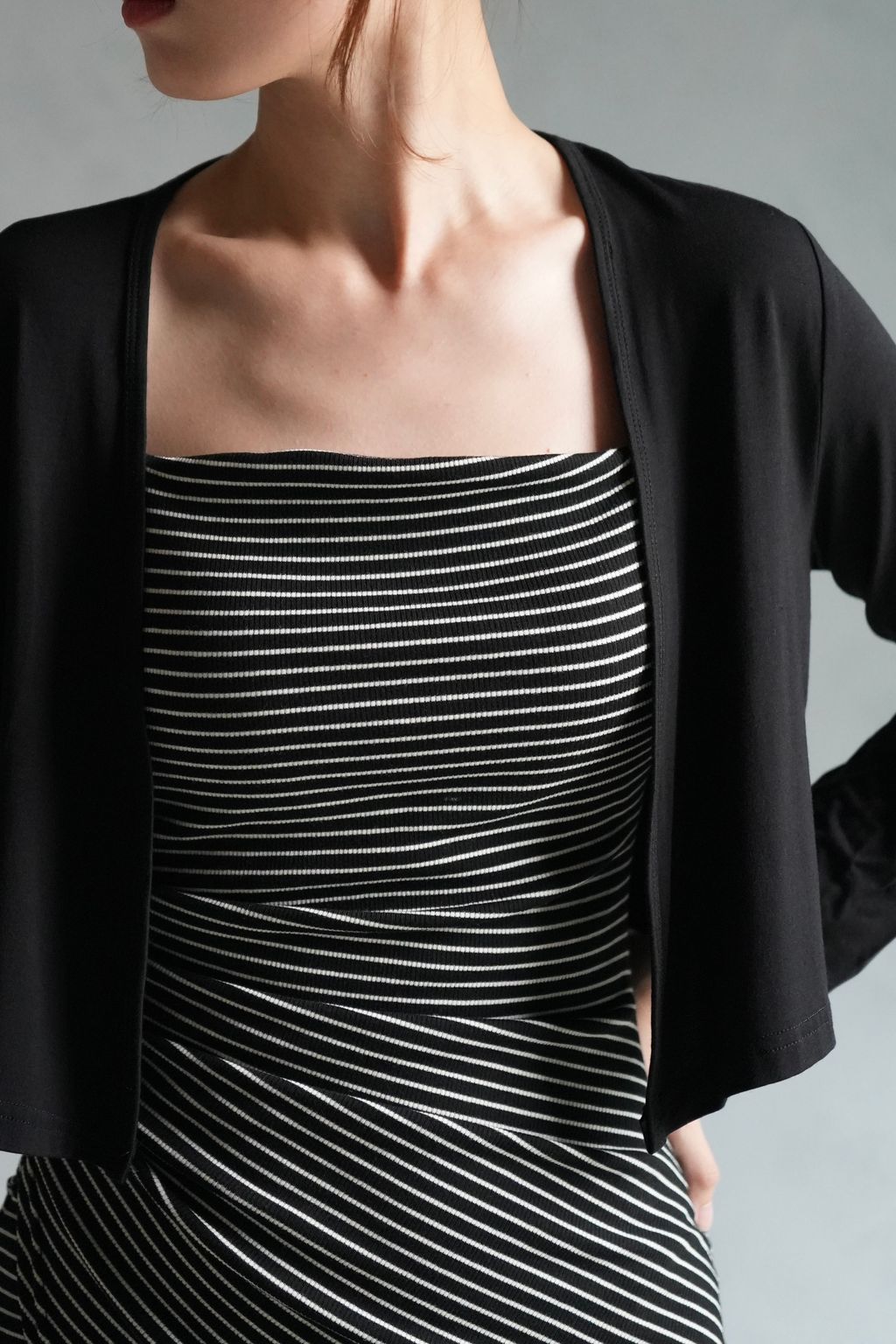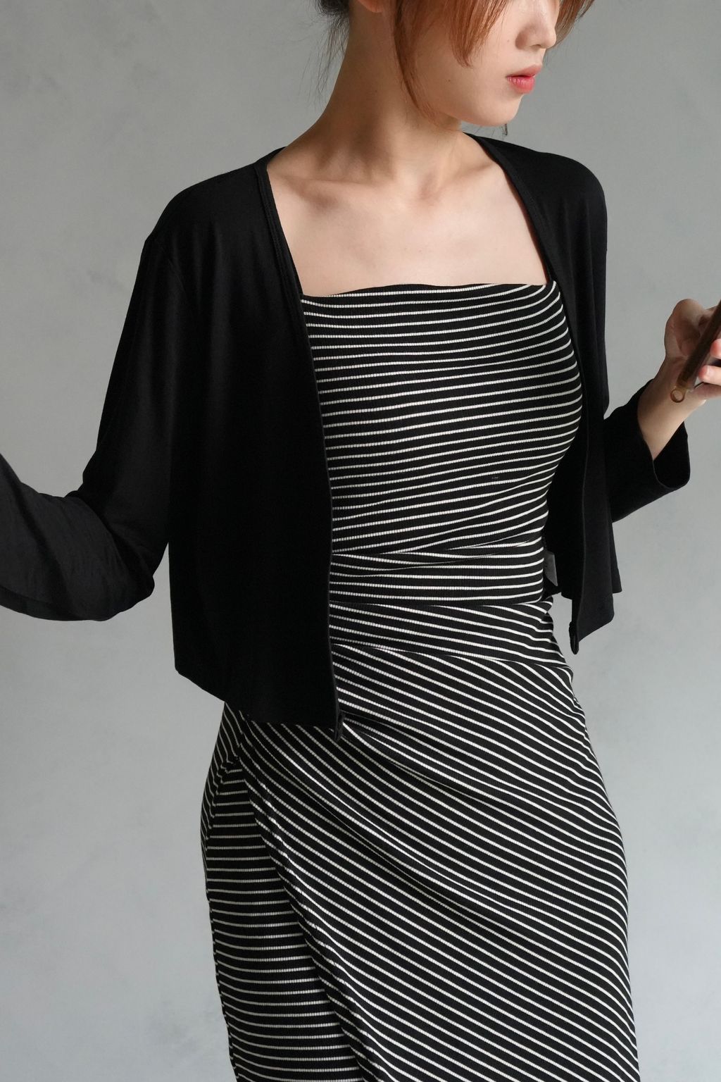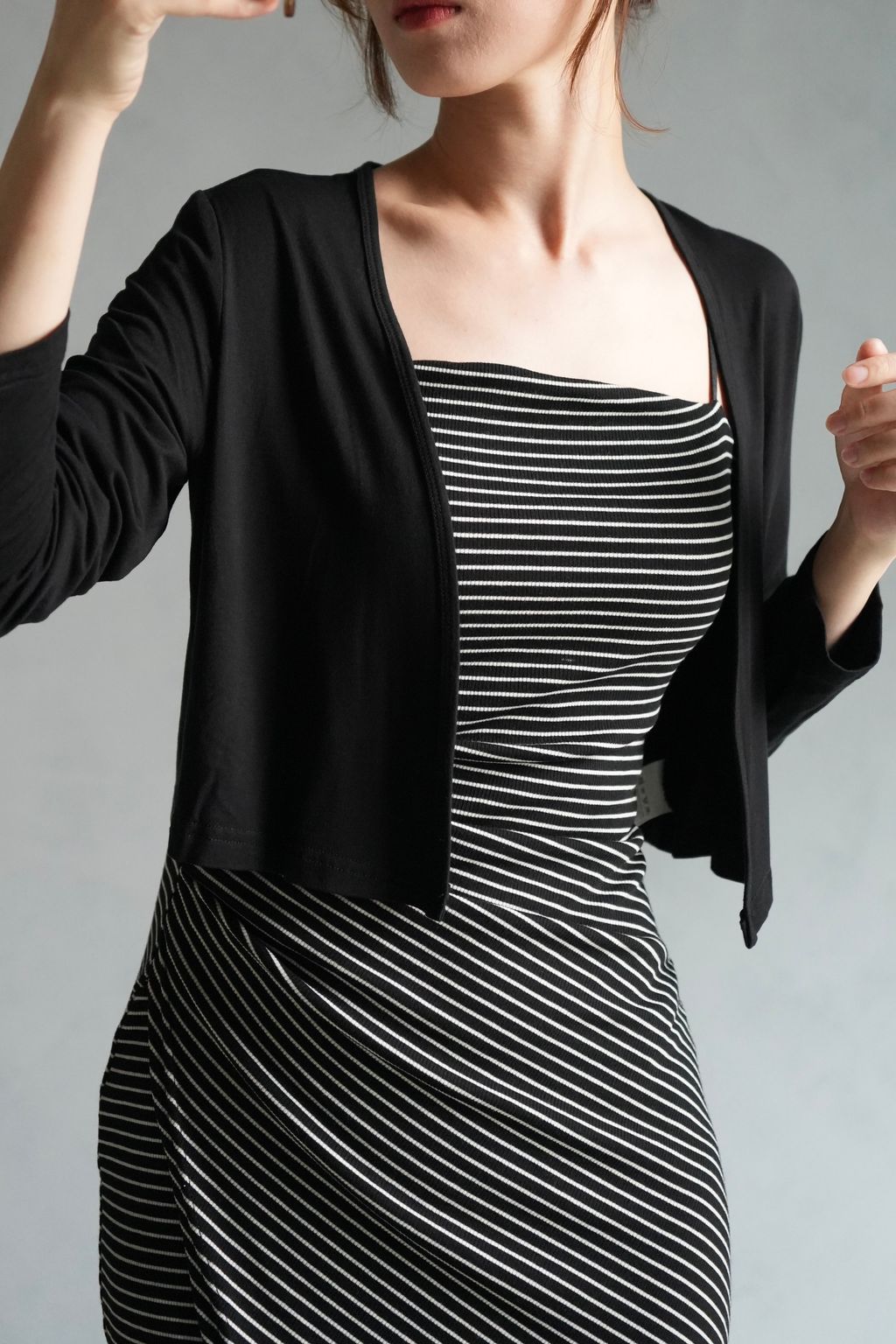 [C] 正肩彈力莫代爾棉罩衫外套|黑白灰*2尺寸