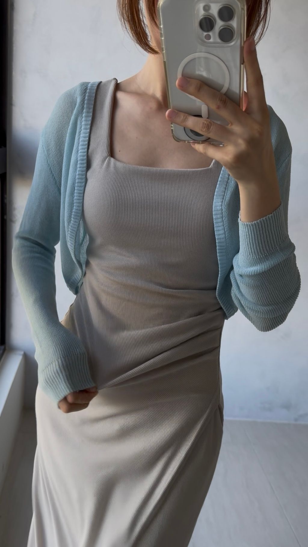 *細肩帶洋裝搭配罩衫外套推薦: