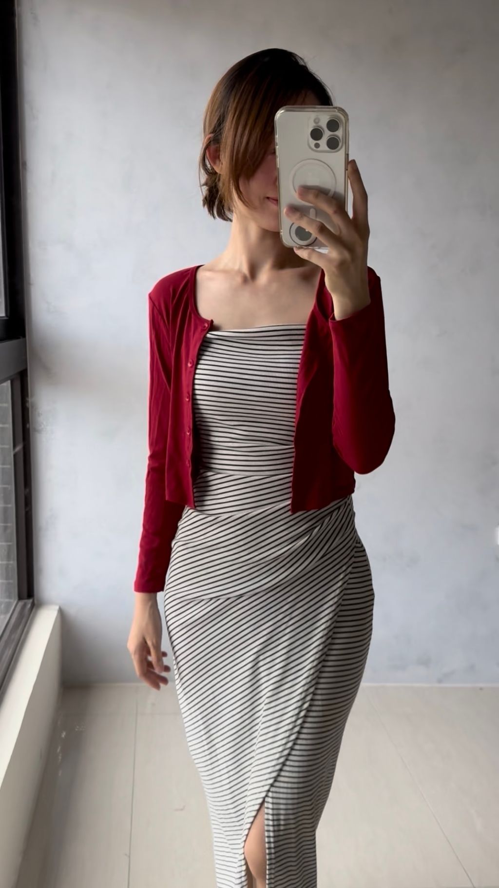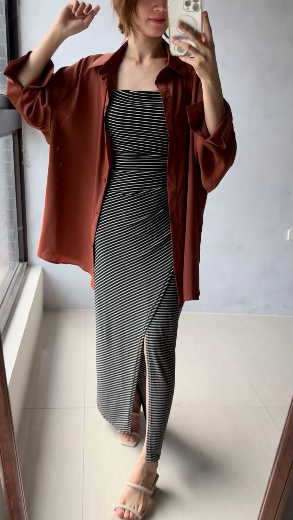 如果常看我發的穿搭應該會注意到,我是沒有腰身的骨架 ( 曾經瘦到40公斤也依然沒有腰線🫠 ) 我的四肢末端瘦沒有脂肪分佈,全身的脂肪都集中在下腹跟臀腿,典型的H+梨形,看數據也會說話,我看起來瘦瘦的上身、這應該要24腰吧!然而我最細腰圍是68cm將近27腰、臀圍92cm,如果覺得看不太出來,那表示我平常穿搭障眼法做得不錯囉!🤣😍