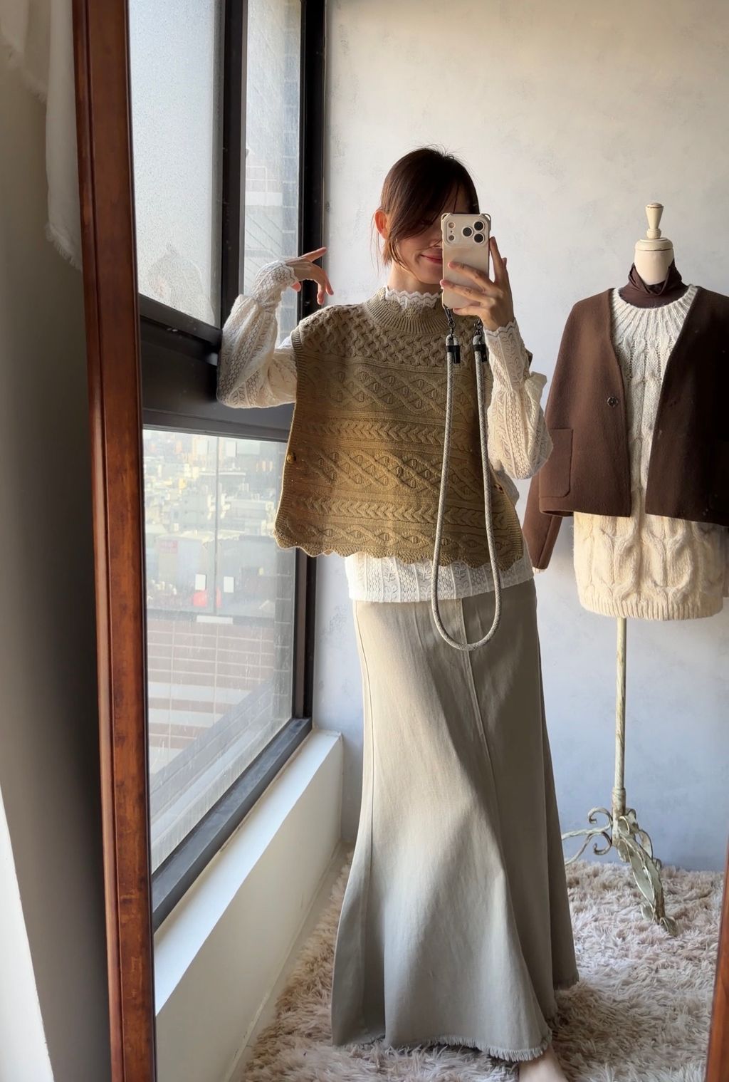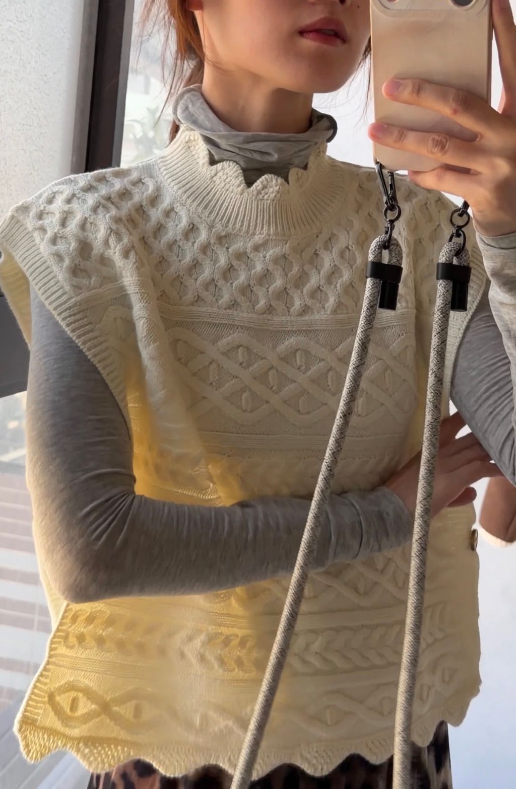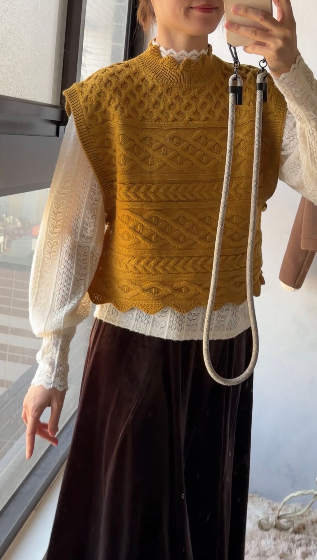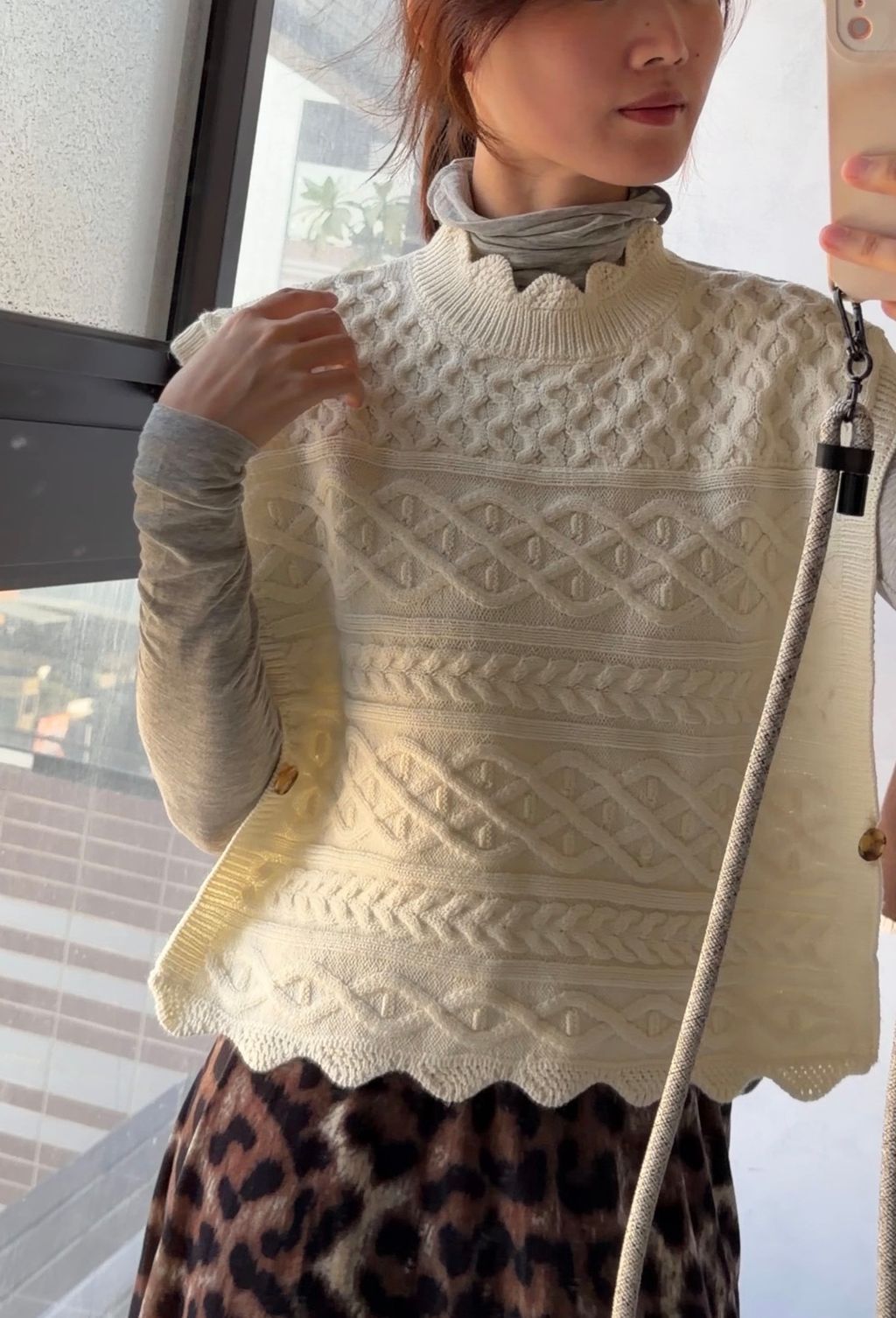 [C] 少見質感花瓣波浪鉤織紋理毛衣背心外罩衫|3色*寬鬆版型*限量現貨