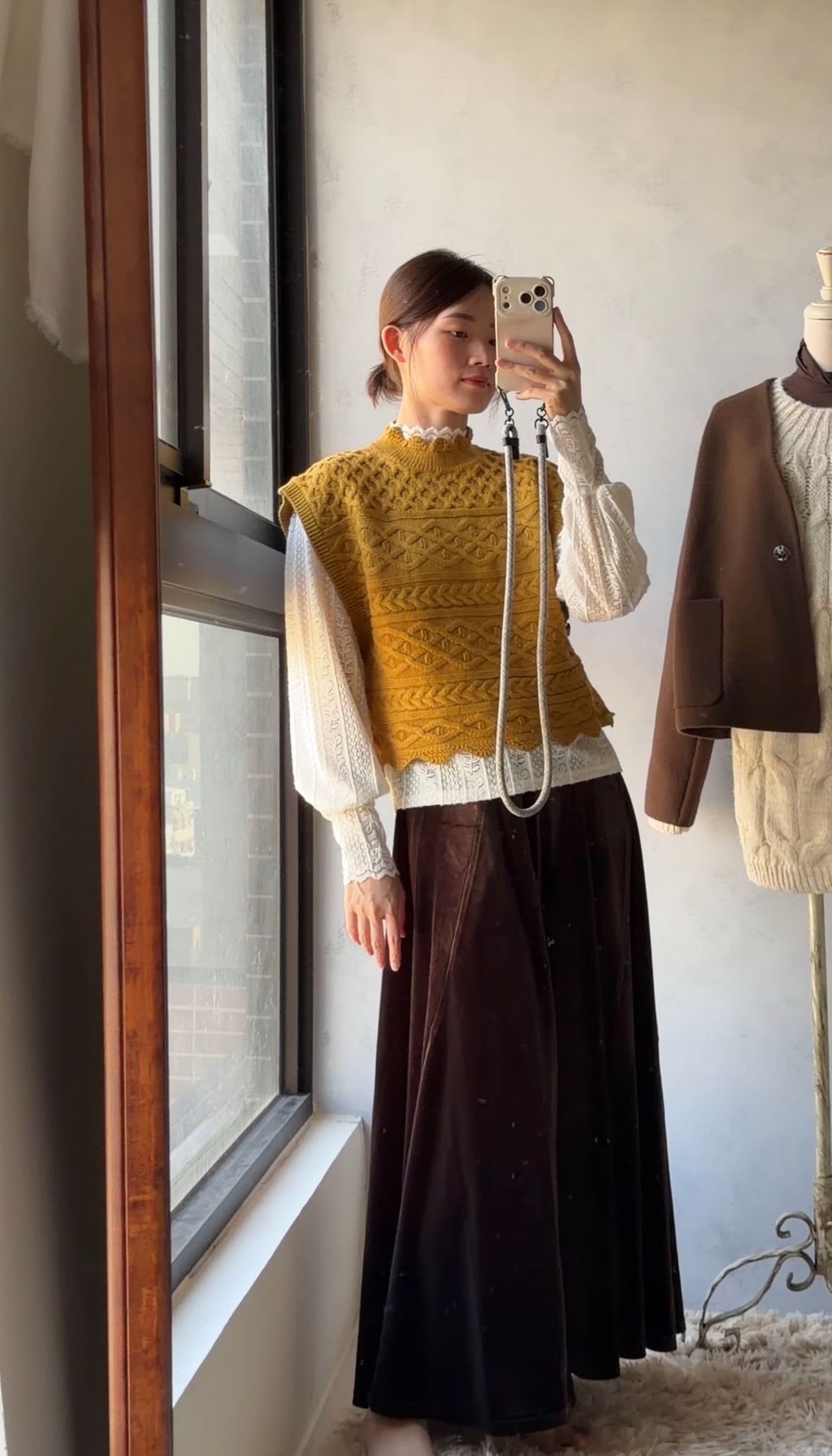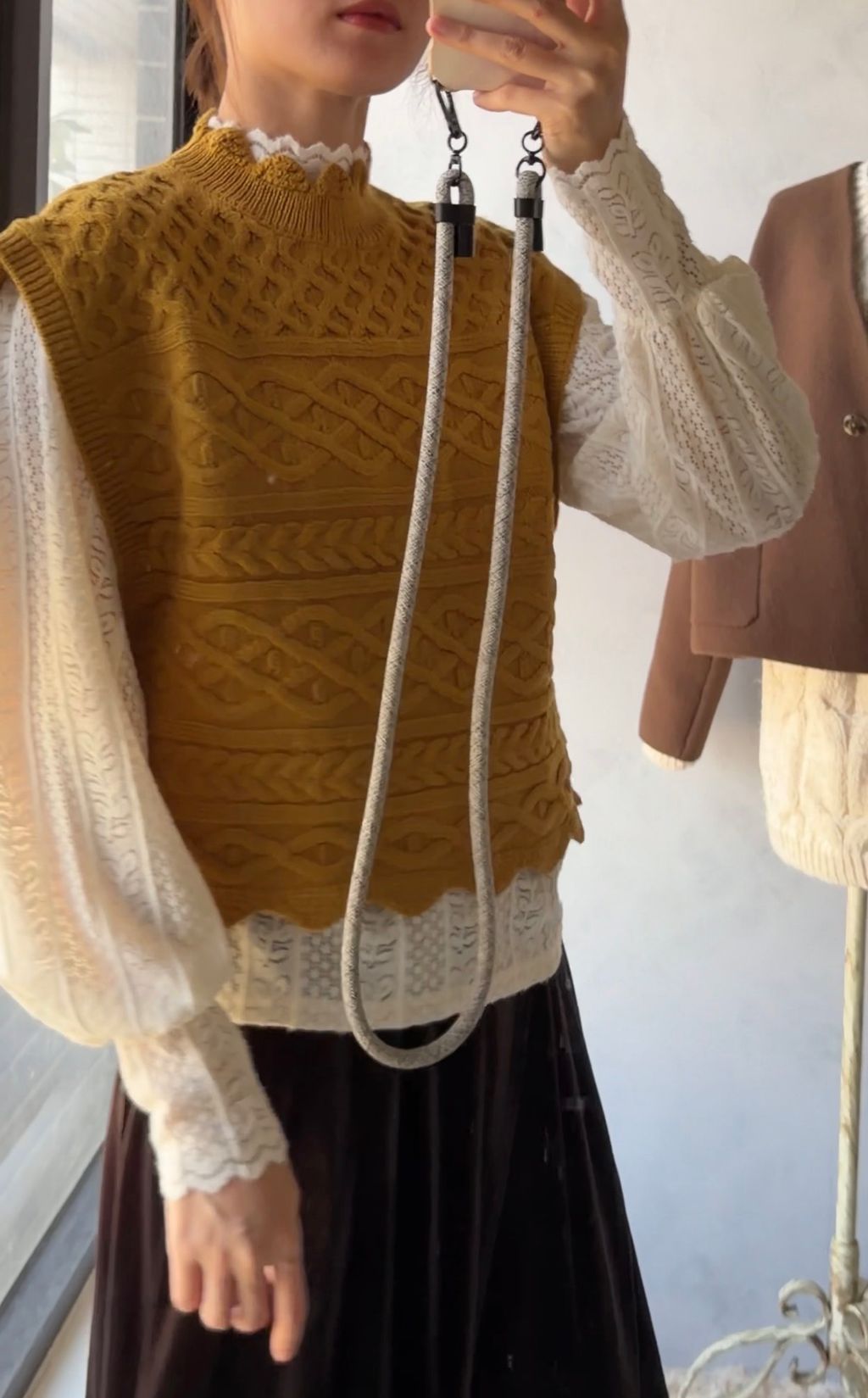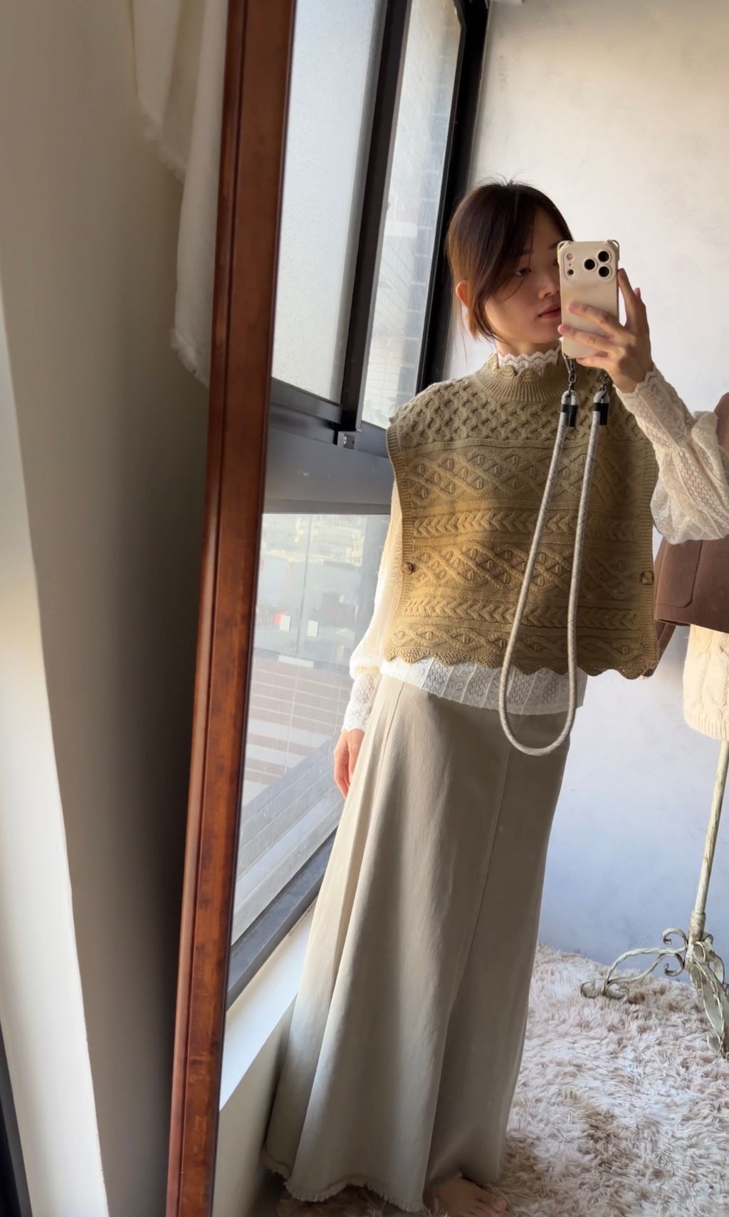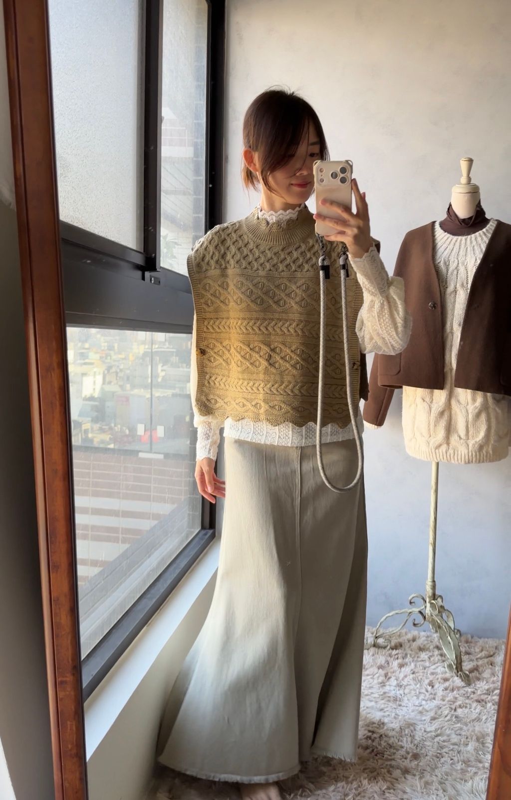 [C] 少見質感花瓣波浪鉤織紋理毛衣背心外罩衫|3色*寬鬆版型*限量現貨